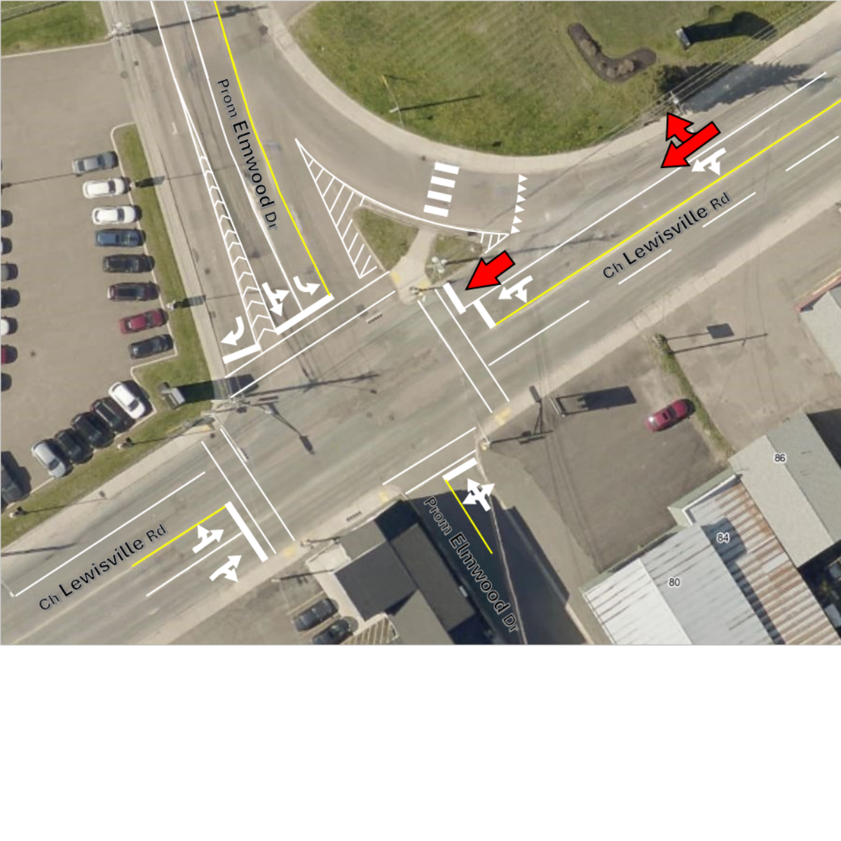 Traffic Pattern Change on Lewisville Road Location: Westbound lanes at the intersection of Lewisville Road and Elmwood DriveDate: Effective Tuesday, August 12, 2025 (following removal of the barricades)Details: The westbound outside lane on Lewisville Road (heading towards Wheeler Boulevard) will be changed from a right-turn only lane to a through and right-turn lane at Elmwood Drive.Currently, motorists in this lane are not allowed to continue onto Lewisville Road. This is to improve the overall capacity and traffic flow at the intersection.